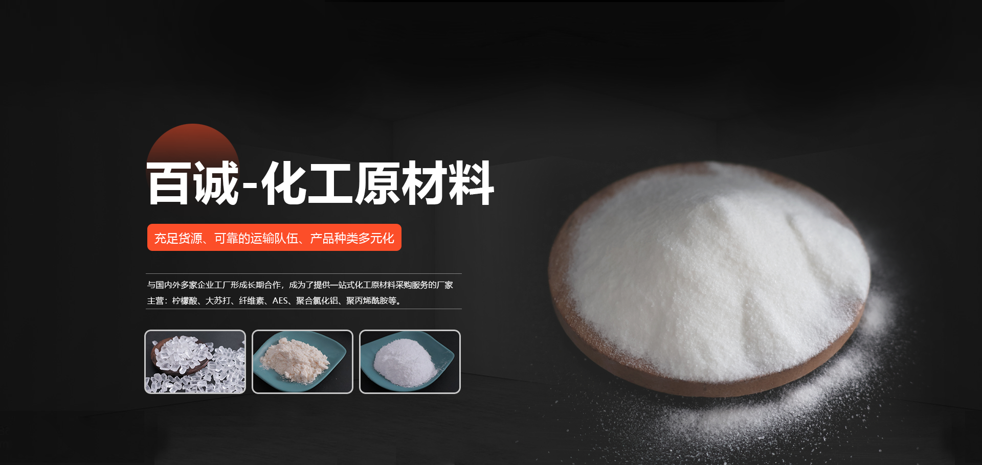 以品質贏得客戶滿意口碑成立于山東的濰坊百誠化工有限公司多年來與國內外多家企業(yè)工廠 形成長期合作,形成了競爭力的化工原材料供應、銷售和服務 渠道,主營:大蘇打、葡萄糖、檸檬酸、纖維素、消泡劑、AES等。